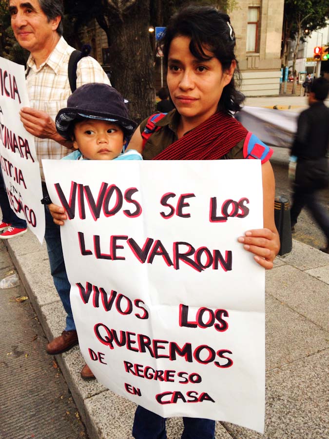 “It has been nearly 40 days. As parents, our children are the most sacred things we have. We will not permit that they [the government] keep betraying us,” a father addressed the crowd on a stage where the parents and siblings of the 43 stood holding posters of the faces of the missing students. The families came to the capital to tell authorities that if they did not find their children this week, they would organize a search themselves. “We will not stop fighting for our children until we’re dead.”